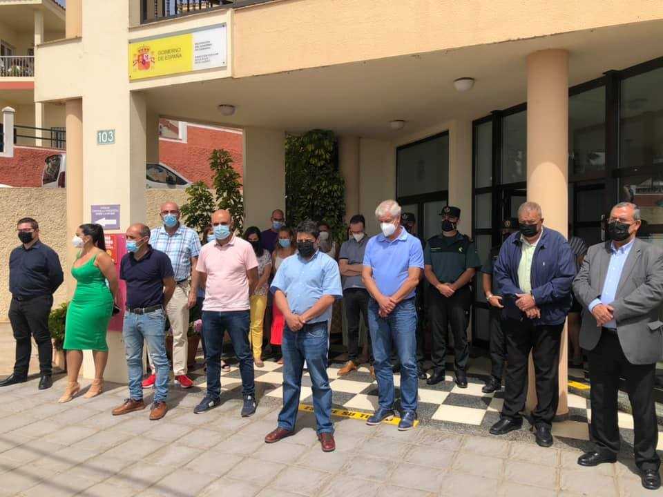 El Hierro muestra su dolor compartido con toda Canarias por el triste desenlace de la desaparición de las niñas de Tenerife y contra la violencia vicaria con un minuto de silencio en la fachada de la sede de la Delegación de Gobierno en la isla con la presencia, entre otros, de las primeras autoridades herreñas.