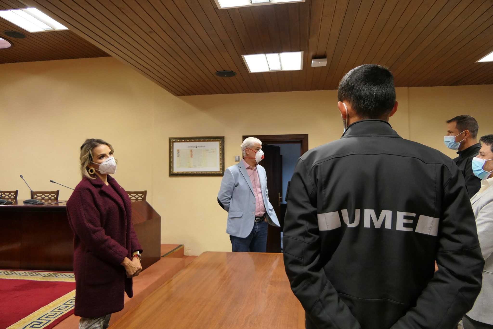 Esta mañana fueron recibidos por el presidente insular, Alpidio Armas, quien les agradeció la participación de la UME en labores preventivas del COVID-19 y les recordó la gran labor desarrollada en el año 2011 con motivo del episodio sísmico-volcánico.